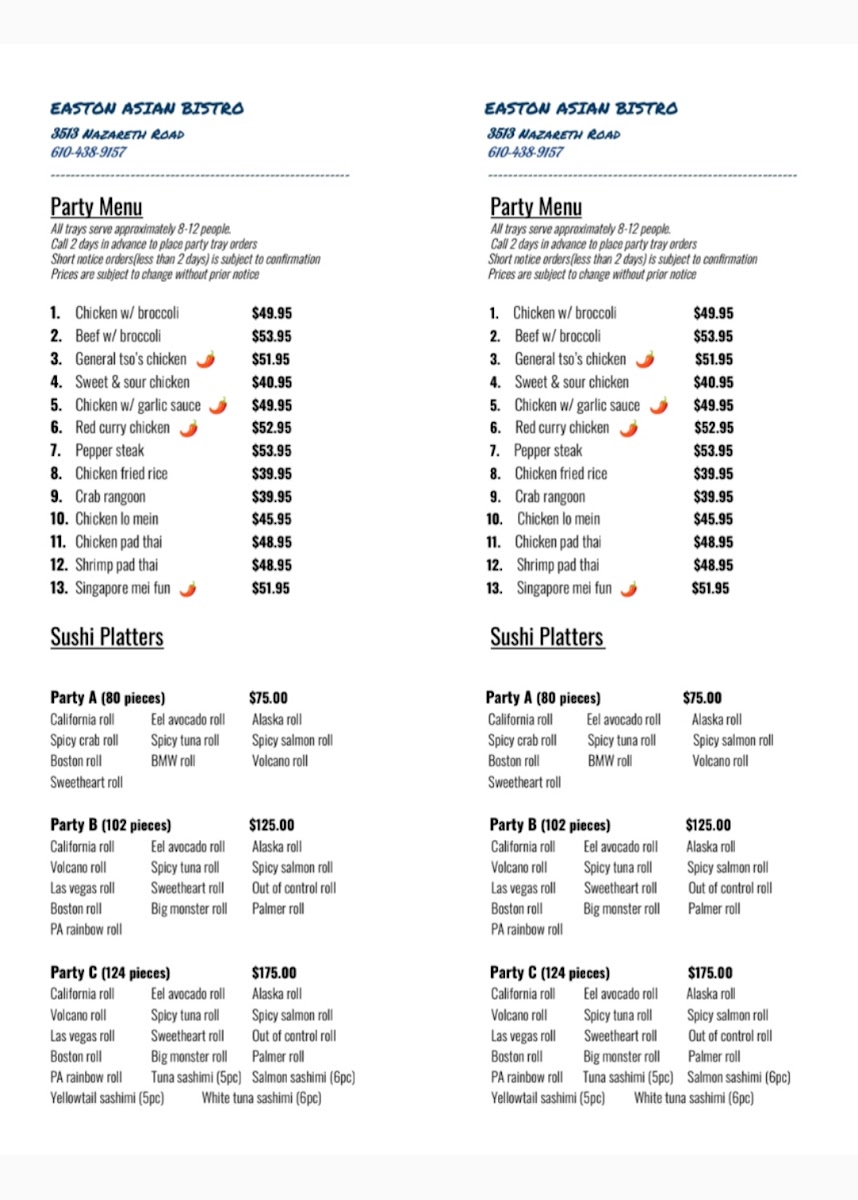 Welcome to Easton Asian Bistro, a delightful culinary haven located at 3513 Nazareth Rd, Easton, PA. This charming bistro excels in offering authentic Chinese cuisine that resonates with freshness and rich flavors. Guests rave about the generous portions and great value, making it a perfect spot for family outings or a casual lunch break.