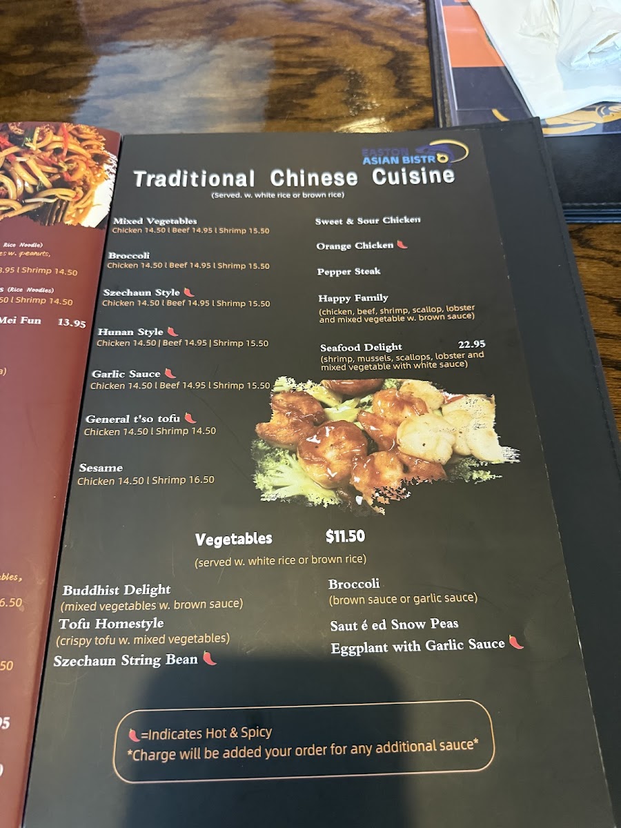 With friendly staff and a cozy atmosphere, Easton Asian Bistro promises an enjoyable dining experience to all who visit.